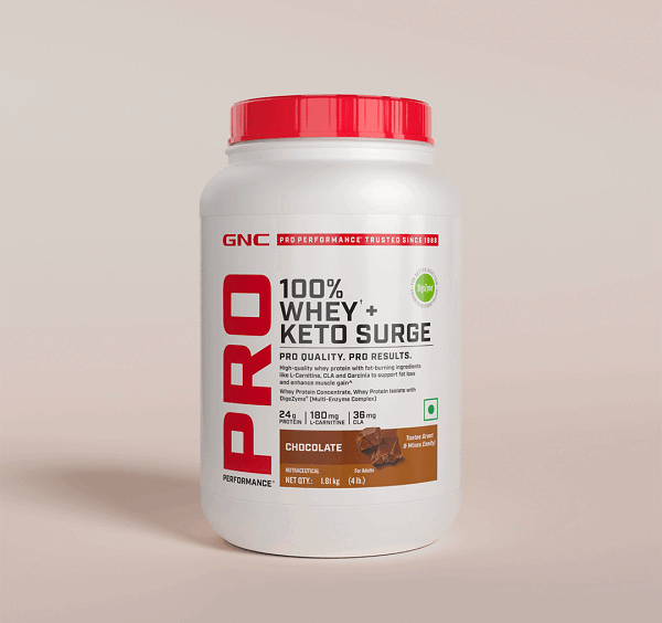 Now available in a delicious chocolate flavor, GNC 100% Whey + Keto Surge comes in convenient 1-pound, 2-pound, and 4-pound size variants, and is available for purchase on GNC India’s website, Amazon, Flipkart, Healthcare, Myntra, Hyugalife, and select offline stores.